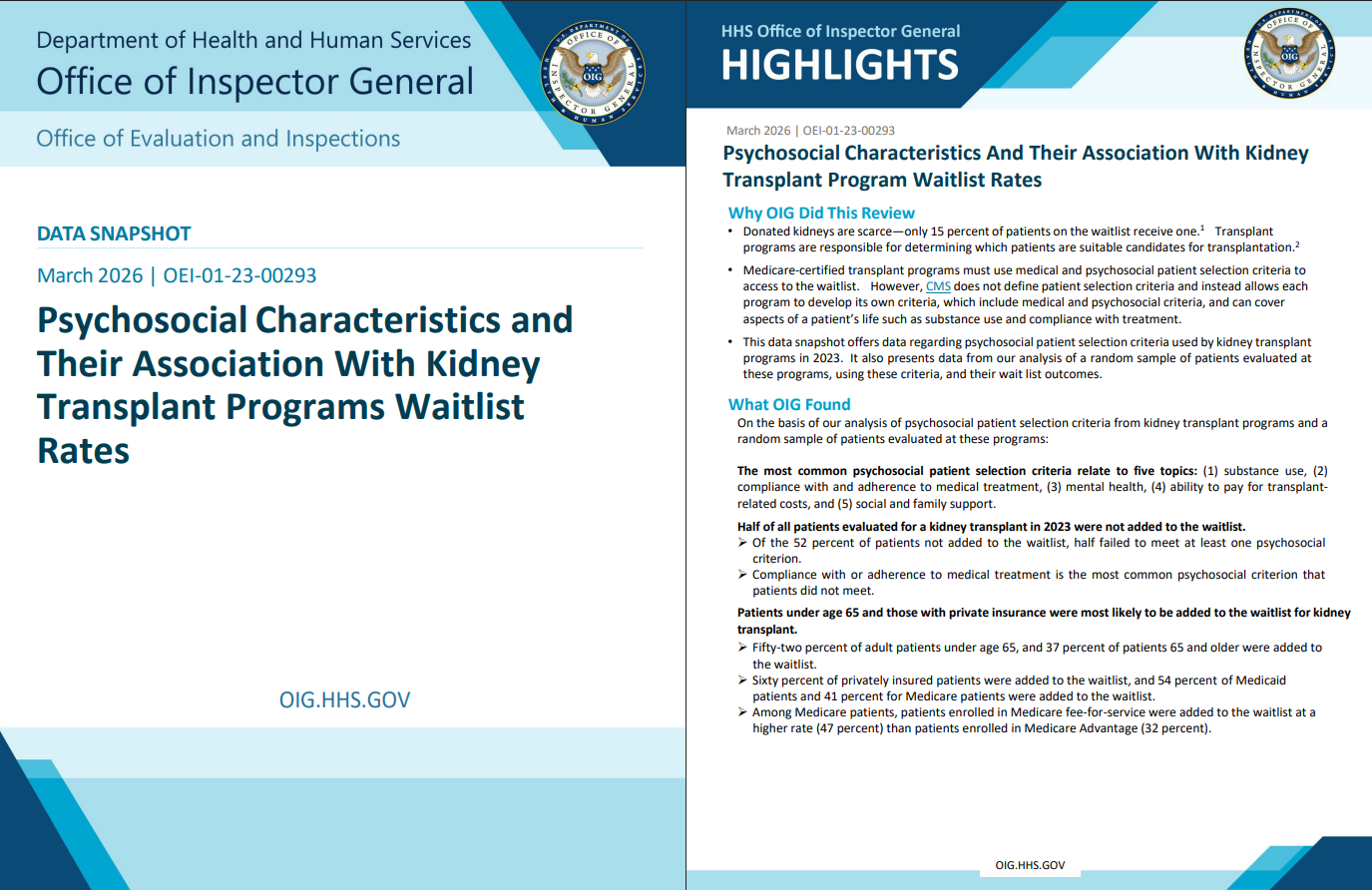 And the broader public often does not understand the full picture. A recent Office of Inspector General report showed how hard it is even to get onto the waitlist, let alone get transplanted.5 If you are one of the few who makes it through years of dialysis and then receives a kidney, you may not feel like complaining, even if the system still has major shortcomings.