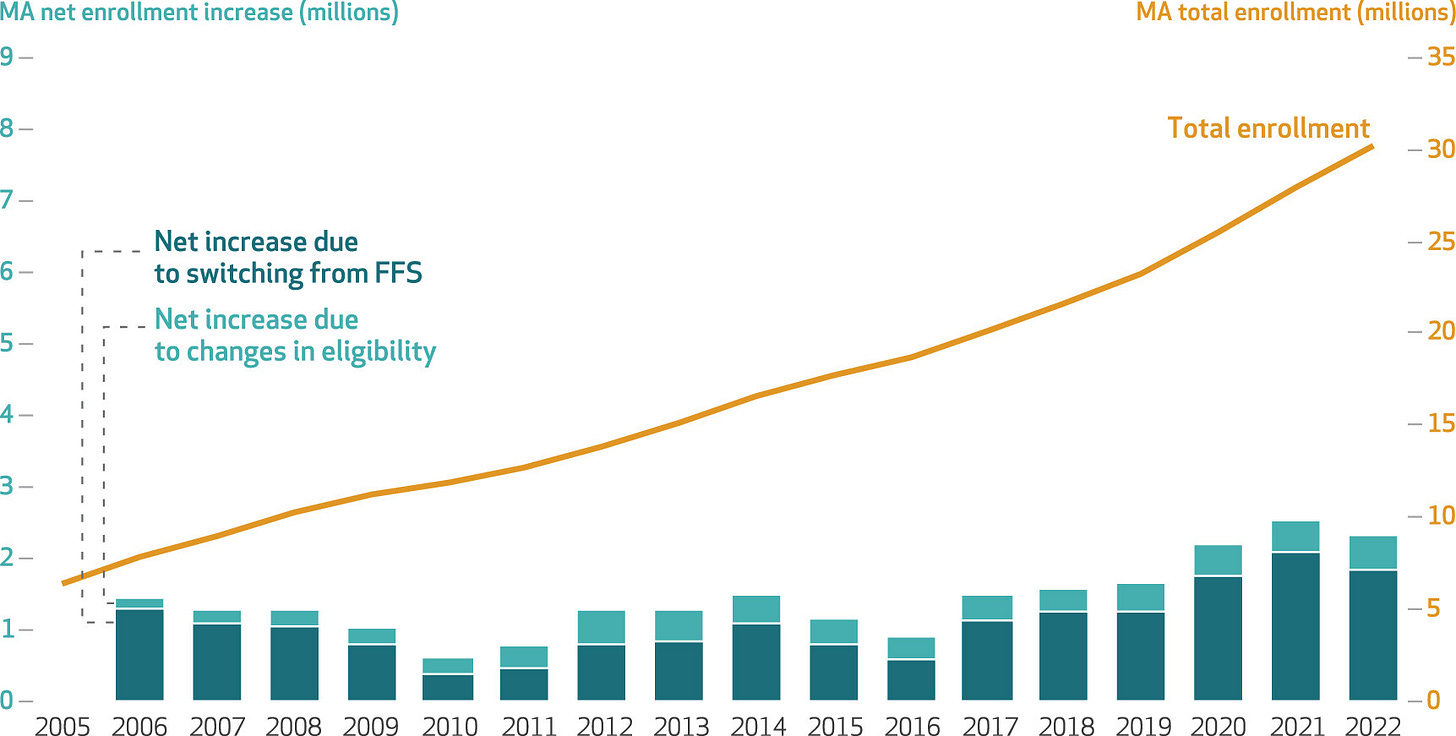 Figure: Medicare Advantage (MA) enrollment, 2006-22