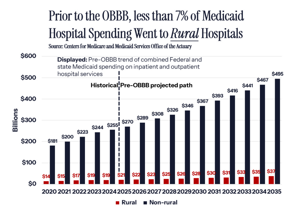 CMS launches $50B Rural Health Transformation Program. The initiative, created under the One Big Beautiful Bill Act, will invest $10B annually from 2026–2030 to expand access, strengthen the workforce, and drive innovation in rural care delivery.2 States will receive cooperative agreements to fund prevention programs, provider payments, workforce pipelines, and technology adoption, including AI and remote monitoring (NACO.org, h/t Kate Sapra).
