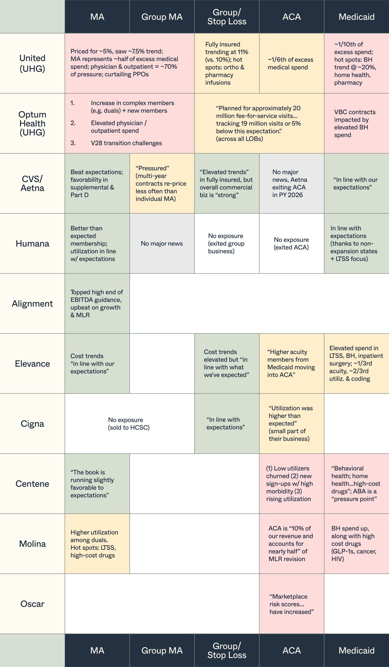 Payers face margin pressure across all lines of business. Earnings calls show higher-than-expected utilization and medical loss ratios in MA, ACA, Medicaid, and group markets, creating a “year of pain” for insurers. Margin recovery efforts will mean premium hikes, tighter networks, and sharper demand for partners who can prove cost savings—creating both headwinds and opportunities for health startups (LinkedIn, h/t Joe Connolly).