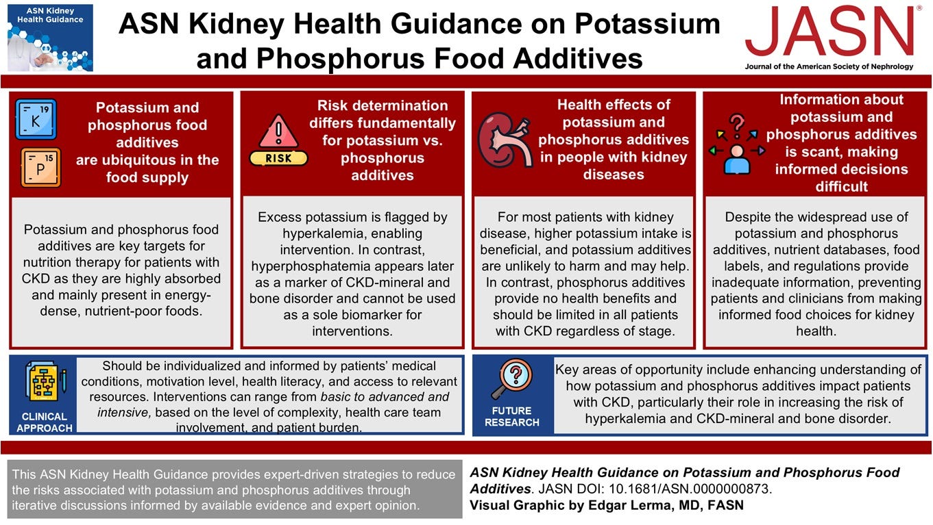 Updated guidance from JASN outlines new strategies to help people with CKD reduce hidden potassium and phosphorus additives in their diets, offering a clearer, tiered framework for clinicians and dietitians. The workgroup recommends basic strategies, like limiting processed foods and encouraging balanced meals, that any clinician can support, while advanced and intensive strategies focus on directly identifying and avoiding additives through label reading, substitutions, and dietitian-led counseling. These approaches aim to reduce additive exposure without overwhelming patients, matching guidance to each person’s food literacy and support needs. (JASN; Purdue Nutrition Science, h/t Annabel Biruete).