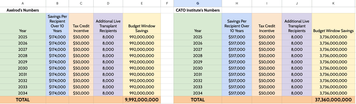 Potential savings: Beyond improving patient outcomes, this tax credit is projected to save taxpayers between $10 billion and $37 billion by reducing the number of patients reliant on dialysis. These estimates are based on savings per recipient between $174,000 and $517,000 from avoided dialysis costs. You can see the two side-by-side calculations below.7