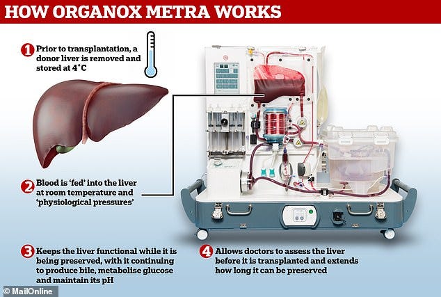 Breakthrough device that can keep donor livers functioning outside the body for 24 hours will revolutionise transplant surgery, experts say (Daily Mail)