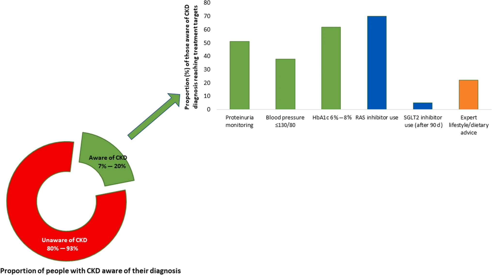 Figure: Proportion of people with chronic kidney disease (CKD) who are aware of their diagnosis and are receiving appropriate guideline-recommended care