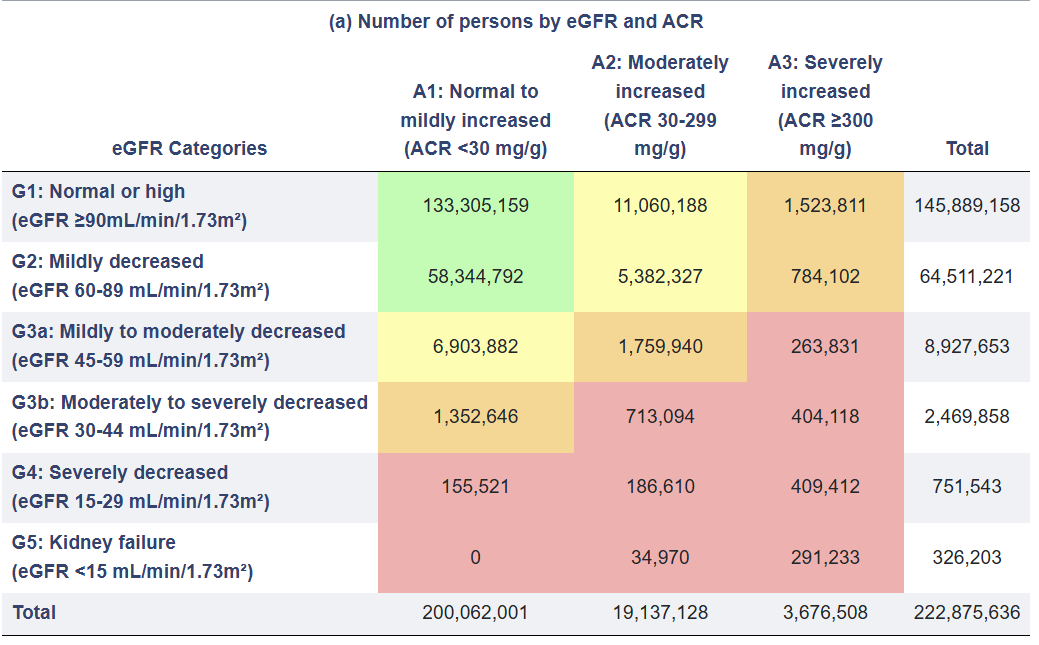 Figure: Distribution of U.S. adults by eGFR and albuminuria category (USRDS)4
