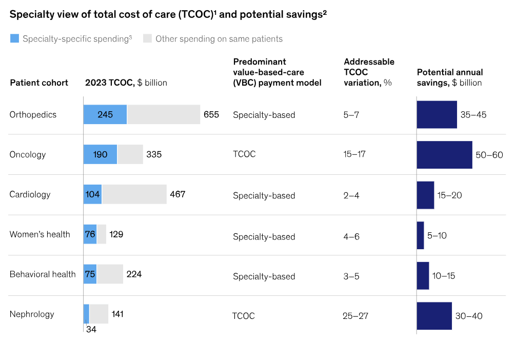 Figure: Potential savings from managing high-cost specialties in value-based payment models6